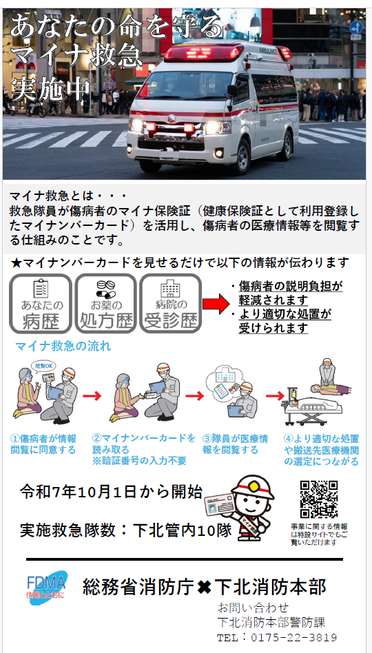 傷病者の健康保険証利用登録済みマイナンバーカードを活用し、救急業務の円滑化を図ることを目的とした実証事業(検証)を実施します。