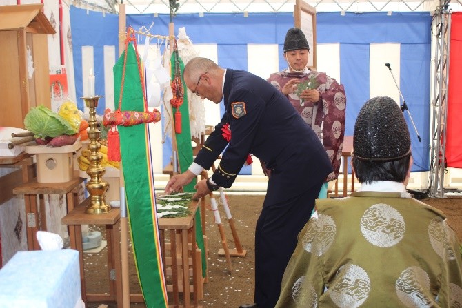 川内・脇野沢消防分署庁舎建設事業「脇野沢消防分署庁舎建設工事」の安全祈願祭が執り行われました。